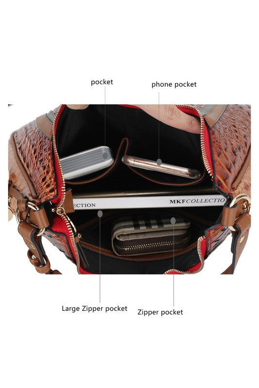 Step up your style game with the MKF Collection Faux Crocodile-Embossed Shoulder bag! This playful accessory adds a touch of wild sophistication to any outfit with its chic crocodile texture. Perfect for day-to-night adventures, it’s roomy enough for your essentials while keeping you effortlessly on-trend. Get ready to turn heads and unleash your inner fashionista!