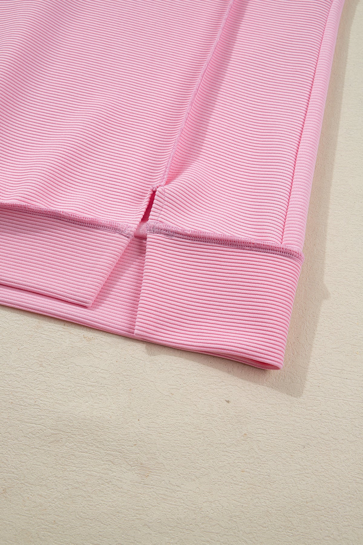 This pink pullover is giving all the effortless cool-girl vibes! The horizontal ribbed texture adds cozy dimension, while exposed seam details bring an edgy, deconstructed twist that feels totally on-trend. With its relaxed drop shoulder silhouette and baggy fit, it's the perfect oversized layer for everything from casual hangouts to weekend adventures. Soft and stretchy, it's your new go-to for comfort that doesn't compromise on style!