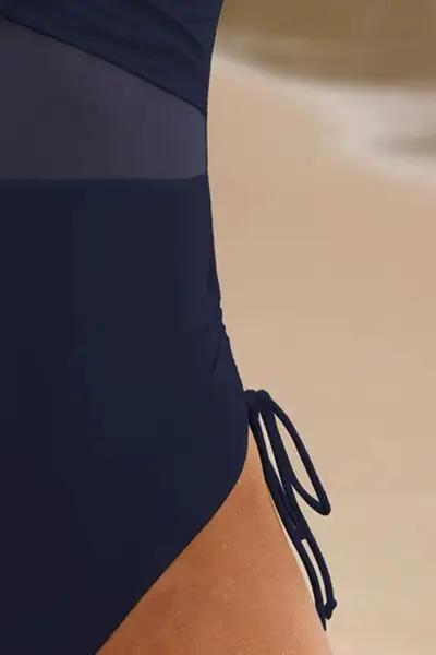 This one-piece swimwear features a drawstring and ruched V-neck for a flattering fit. Perfect for any pool or beach day, this swimwear will make you feel confident and stylish. Feel your best in this drawstring ruched V-neck one-piece swimwear. Get ready to turn heads and make a statement in this must-have swimwear!