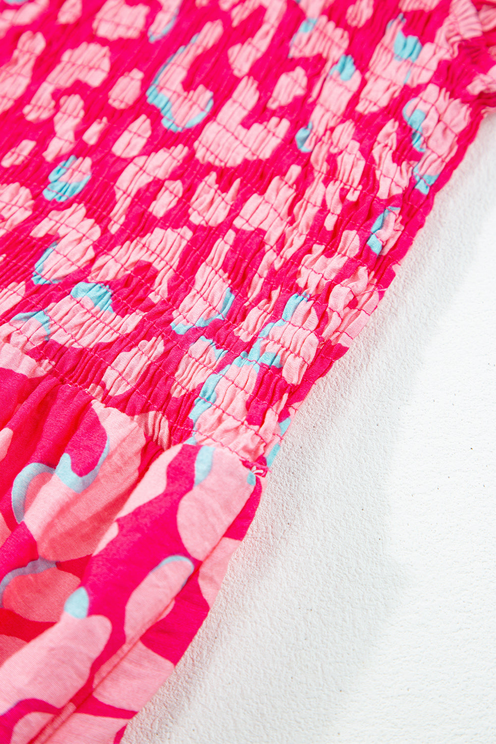 Step out in style with this Pink Leopard Long Dress, where playful meets chic. The bold leopard print brings trendy flair, while ruffle straps add a flirty, fun vibe. The smocked bodice and high waist enhance your natural curves, creating a flattering hourglass silhouette. Perfect for sunny days, pair it with sandals and a straw hat for a carefree, beach-ready look that turns heads wherever you go.
