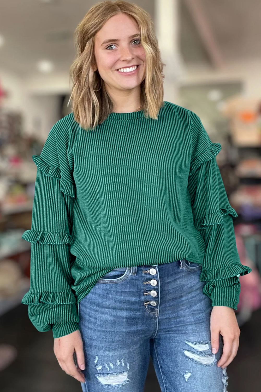 Bright Green Festive Bow Backless Bubble Sleeve Sweater