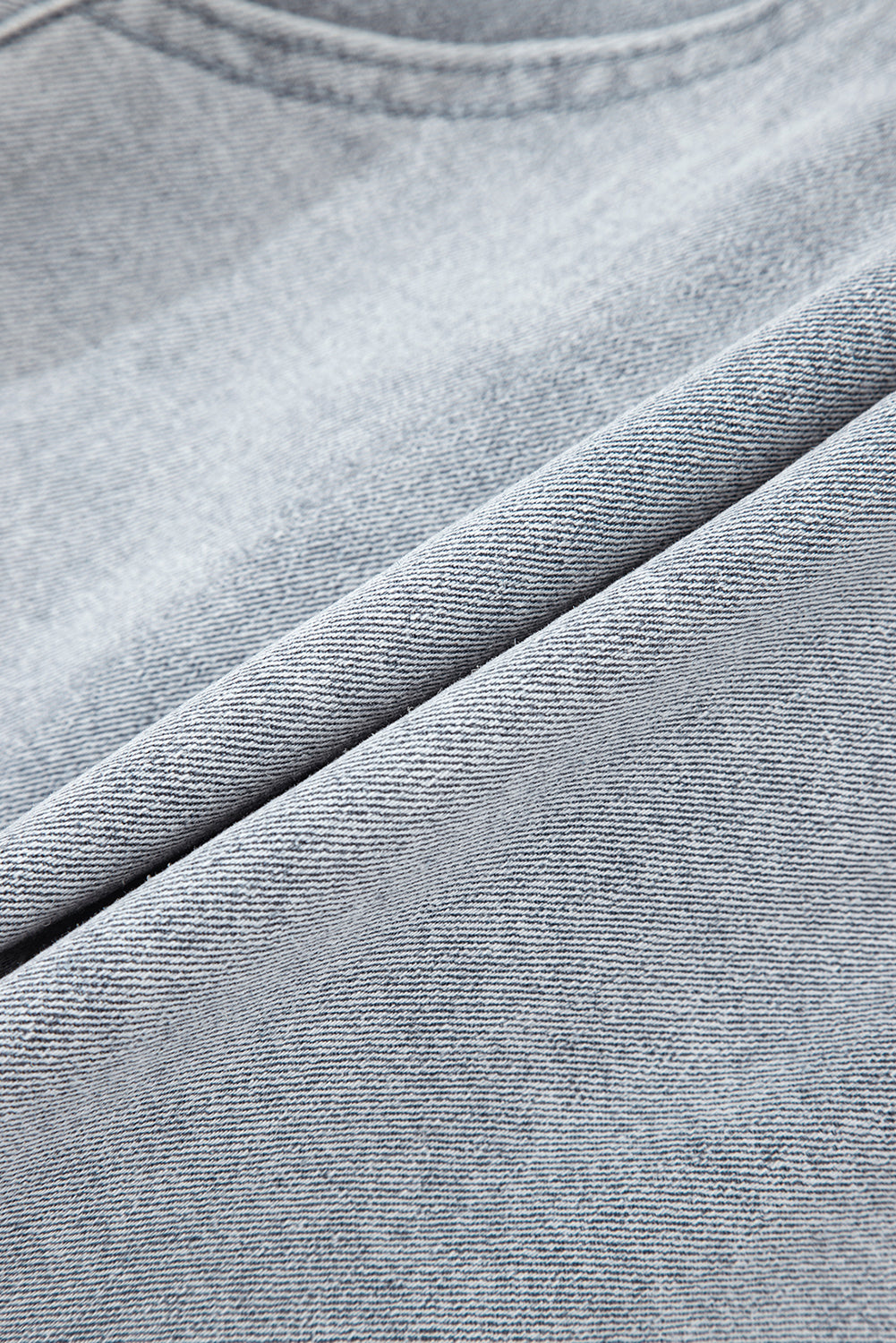 Sail Blue Scalloped Hemline Acid Wash High Waist Denim Shorts