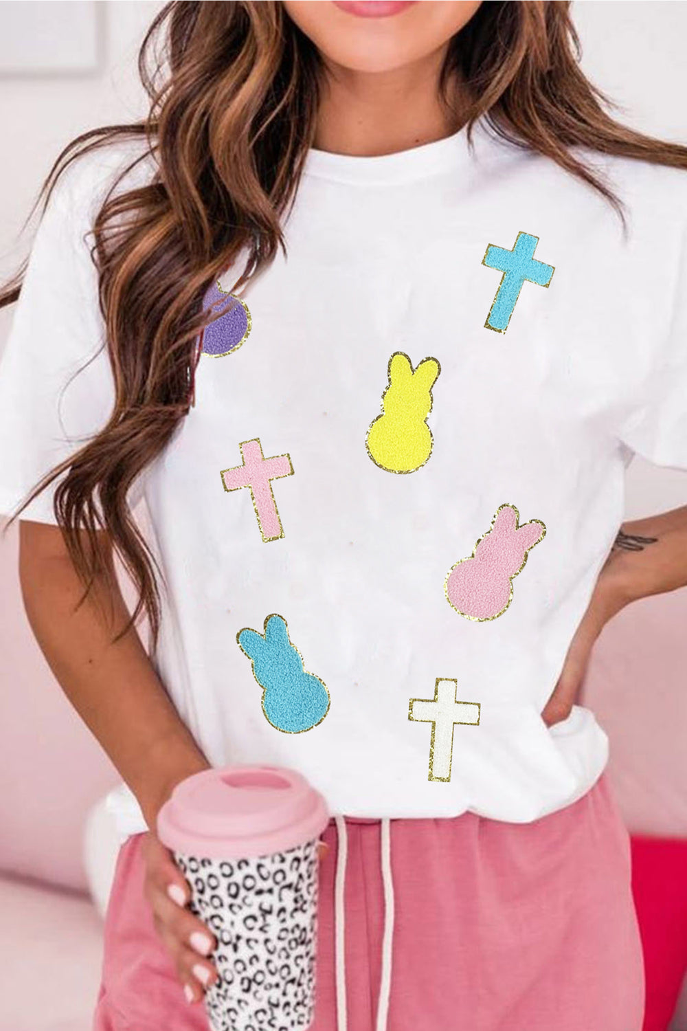 Pink Easter Bunny Chenille Patched Graphic Tee