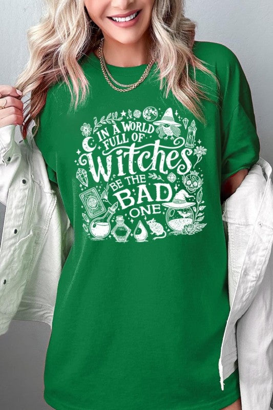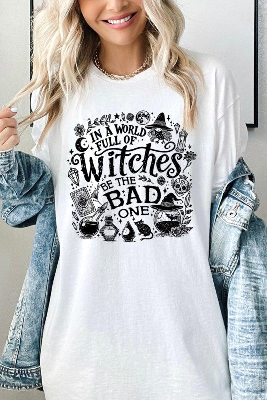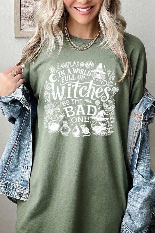 witch shirt, halloween graphic tee, spooky season top, gothic t-shirt, witchy vibe shirt, bad witch Graphic Heavy Cotton Tee.