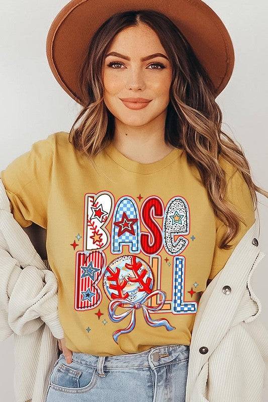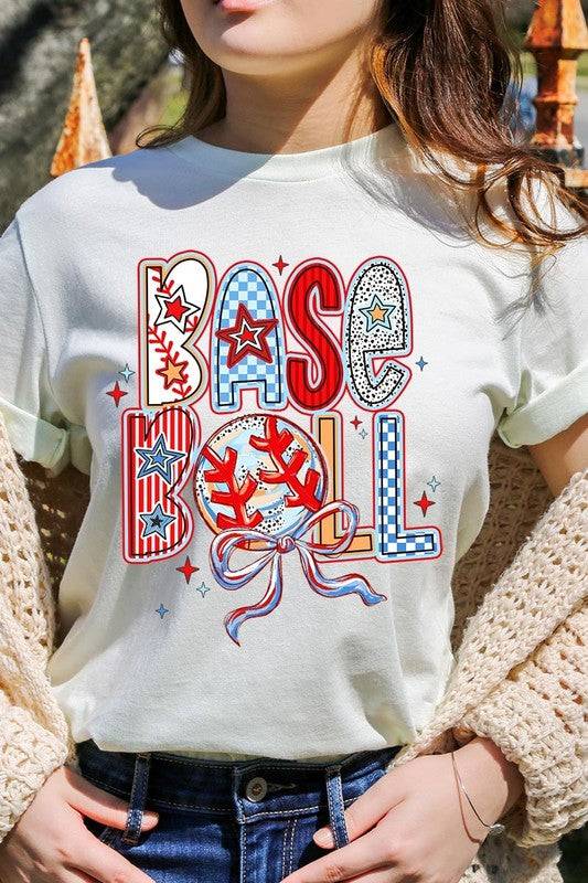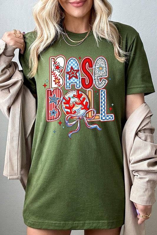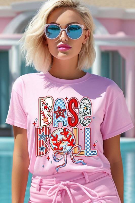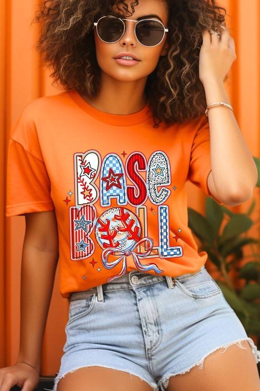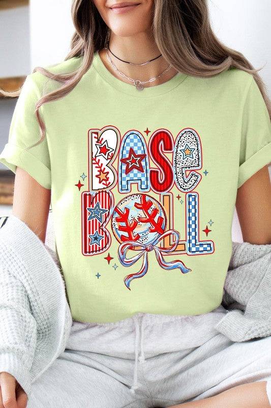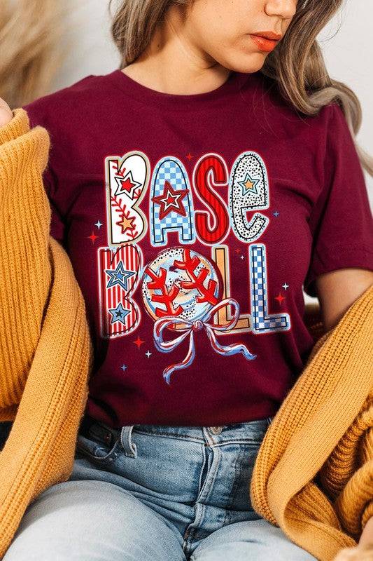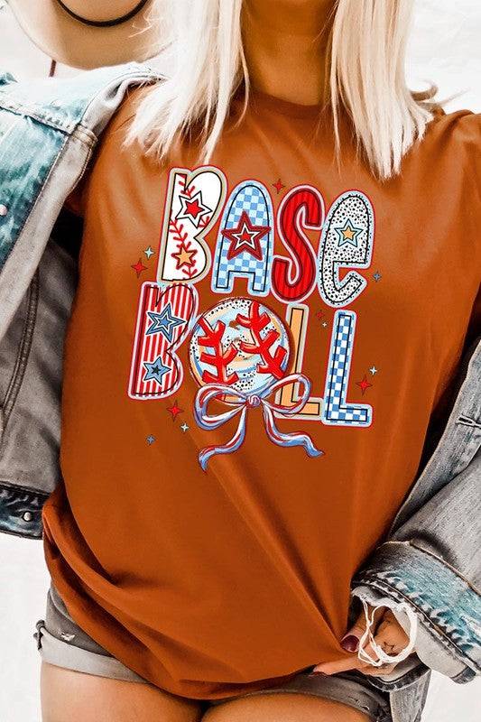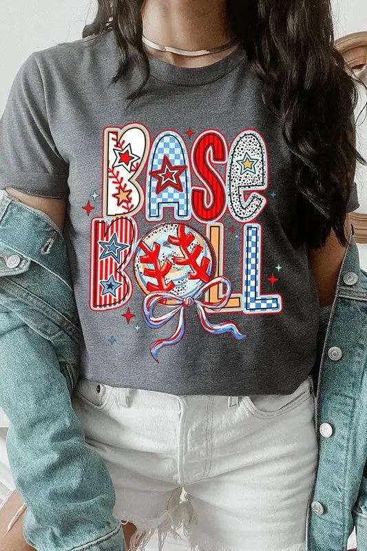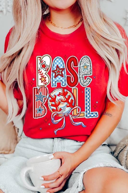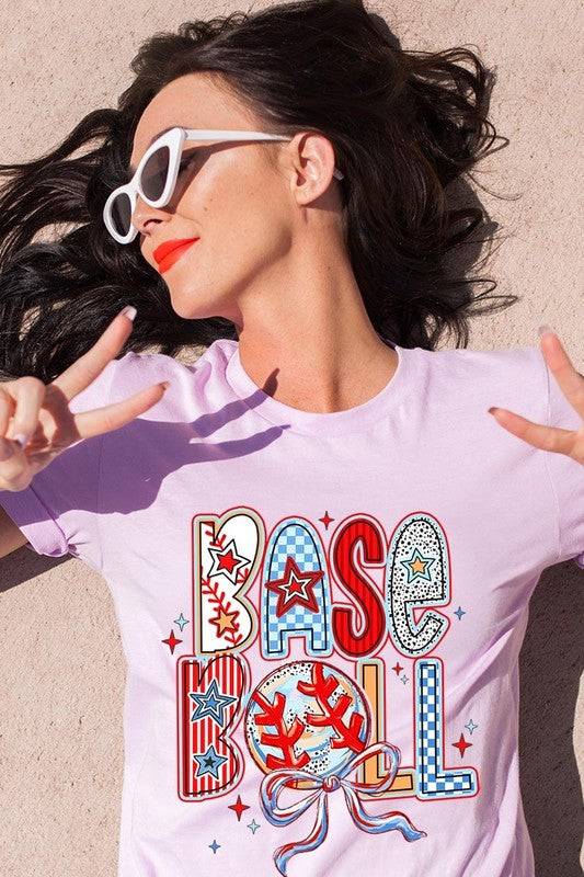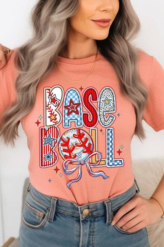 Brushstroke Baseball, Coquette, Game Day, Baseball Bow, Baseball Mama, Baseball Mom, Retro, Checkered, Graphic Plus Size Tee.