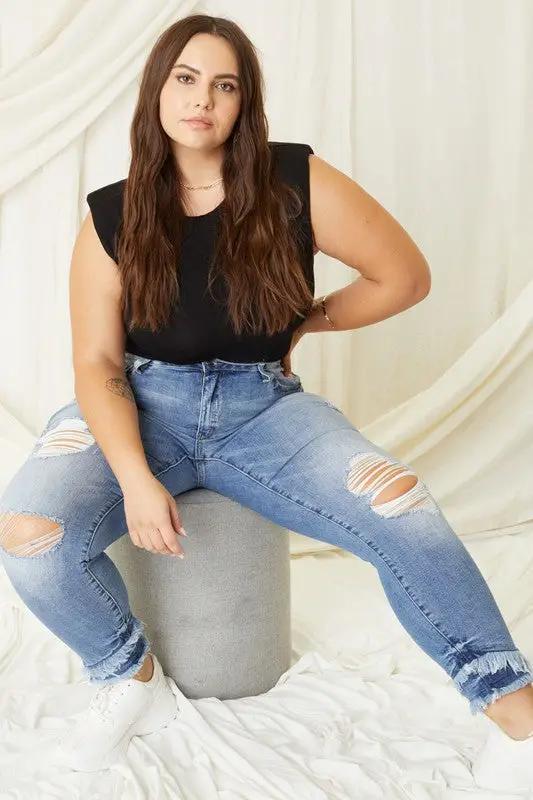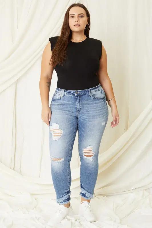Judy Blue Full Size Mid Rise Destroy Straight Jeans Plus Size