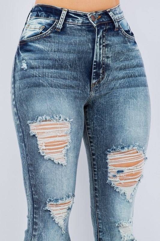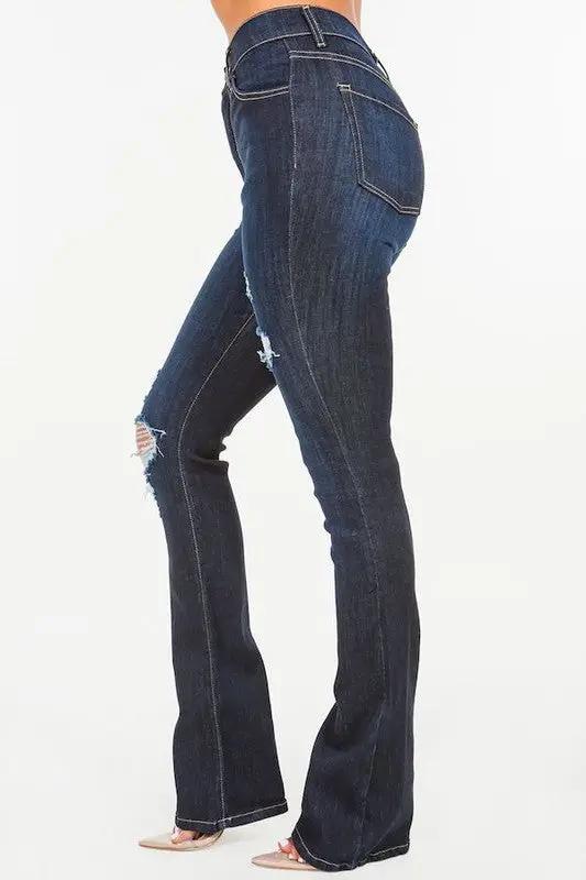 Real Teal High Rise Ripped Bell Bottom Jeans