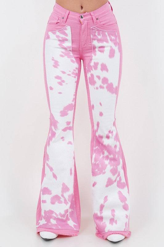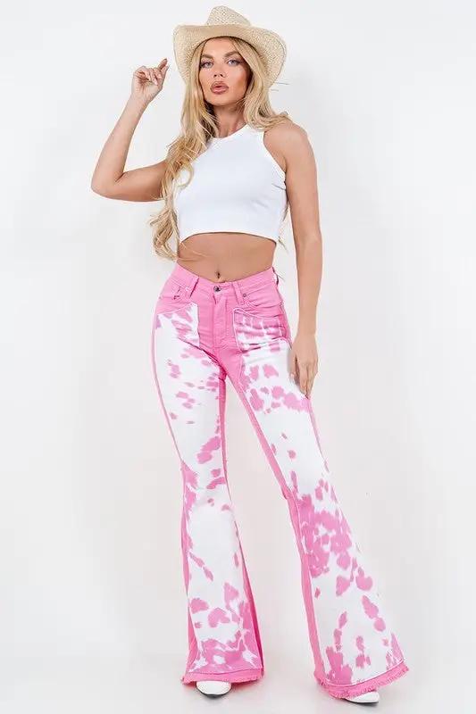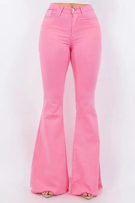 Pink Vintage High Waist Flare Leg Ripped Raw Hem Jeans