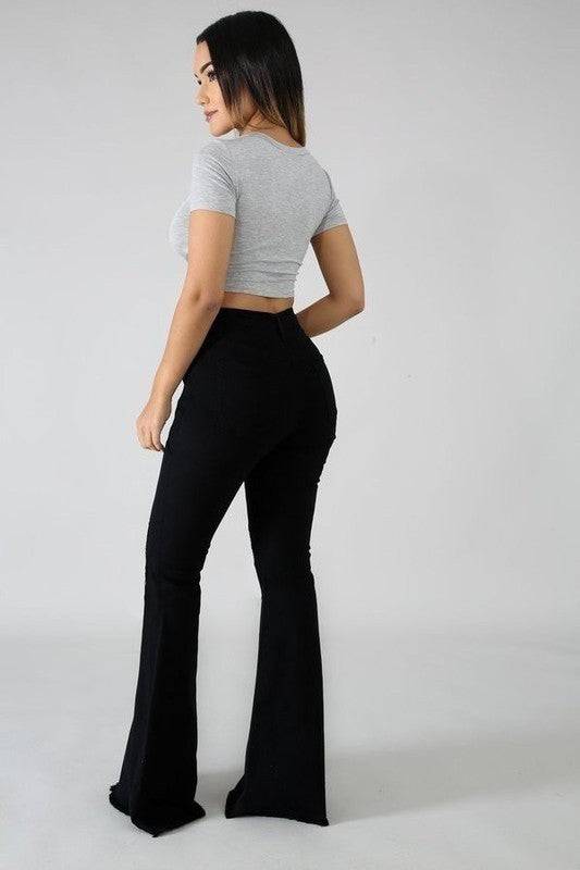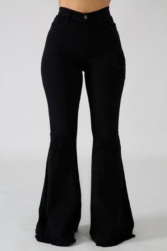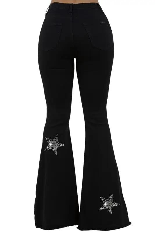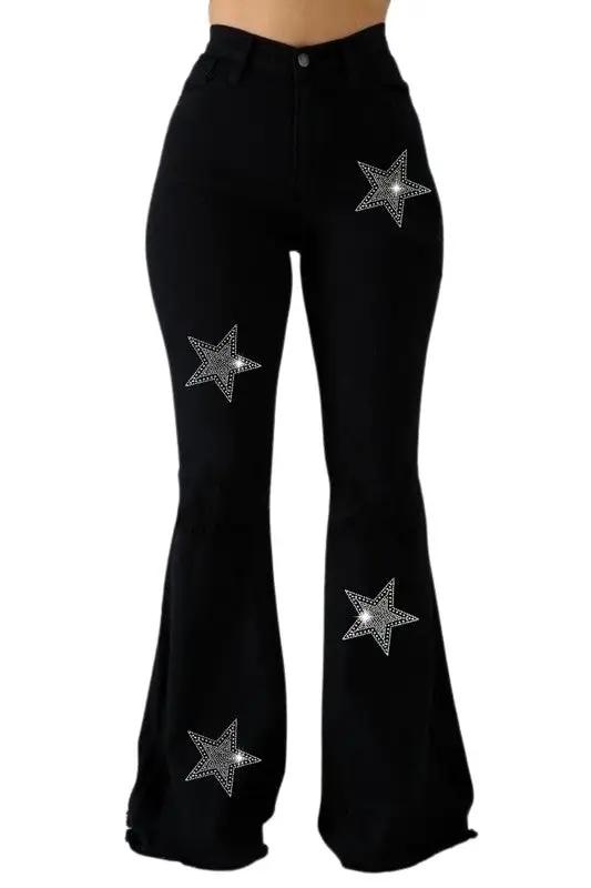 Black Bell Bottom with Diamond Star Embellishments