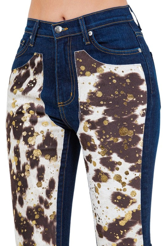 Sail Blue Turquoise Pattern Raw Edge Cropped High Waist Jeans