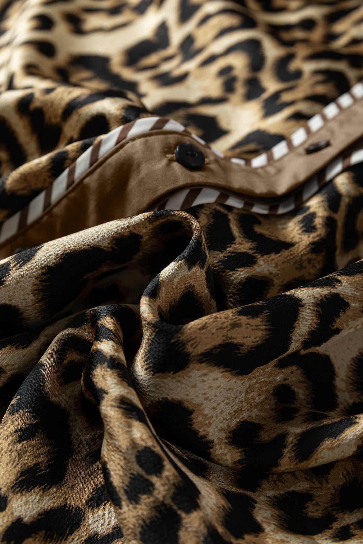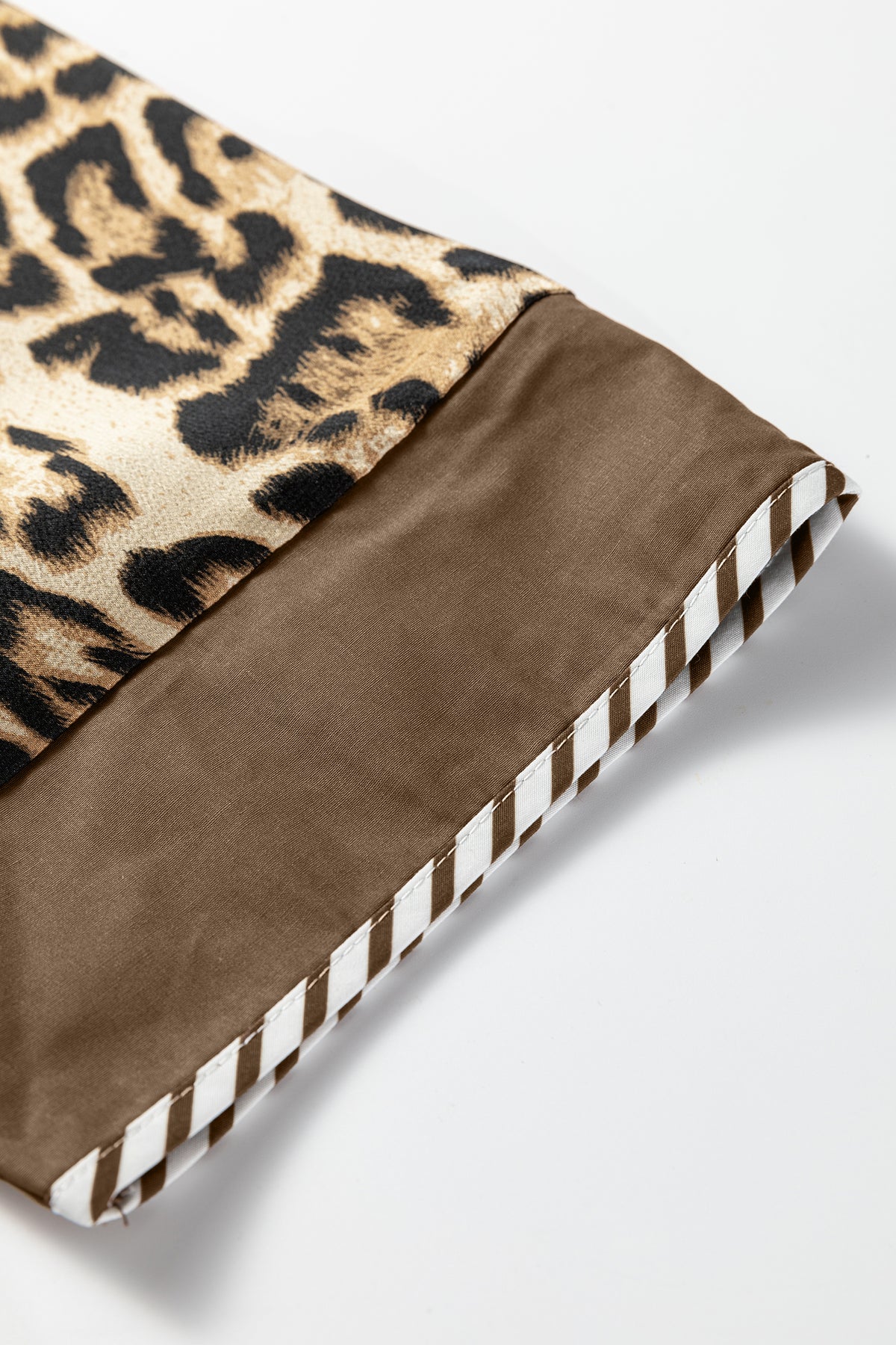 Get ready to turn heads with this playful leopard print set! Featuring a chic ¾ sleeve collared shirt paired with high-waisted wide-leg pants, this two-piece outfit blends bold style with all-day comfort. Perfect for those who love to make a statement while feeling sleek and free, it’s your go-to look for unleashing your wild side in effortless fashion.