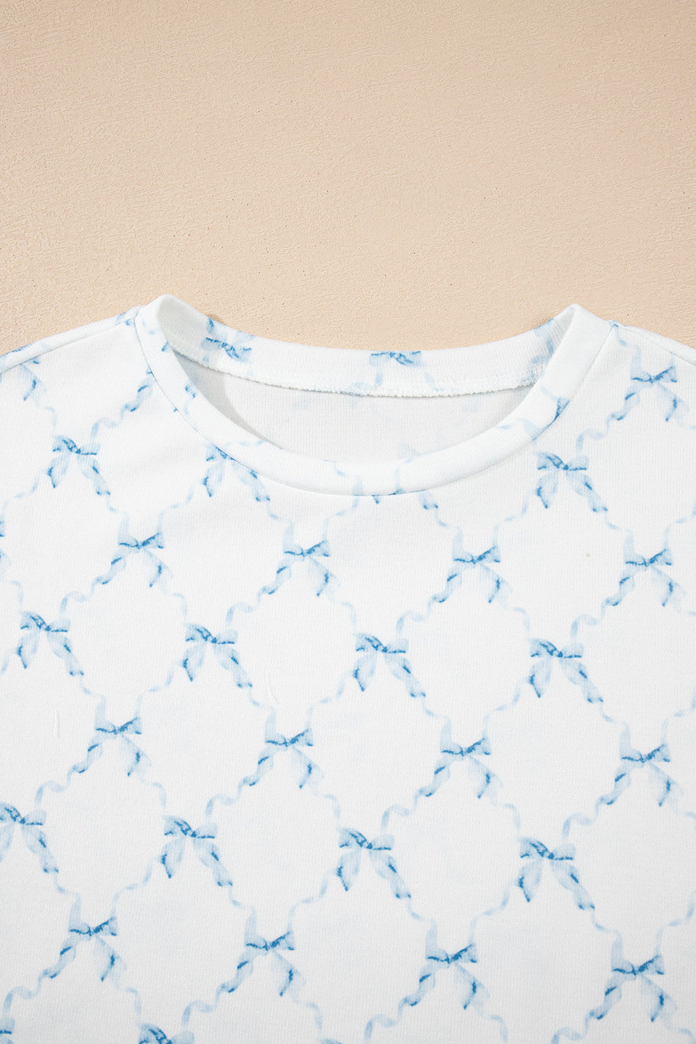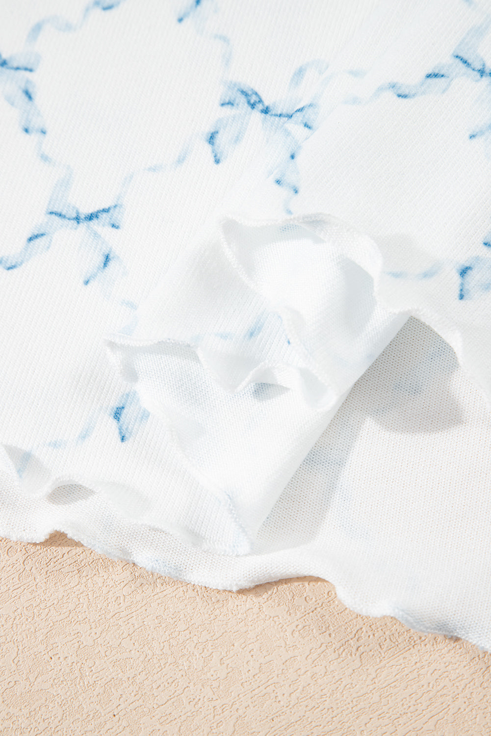 Upgrade your loungewear game with our Sky Blue Bow Knot Geometric Print Lettuce Trim Two Piece Lounge Set. Featuring a stylish bow knot and trendy geometric pattern, this set is perfect for sleeping or lounging. The lettuce trim adds a playful flair to the comfy crew neck tee and drawstring shorts.