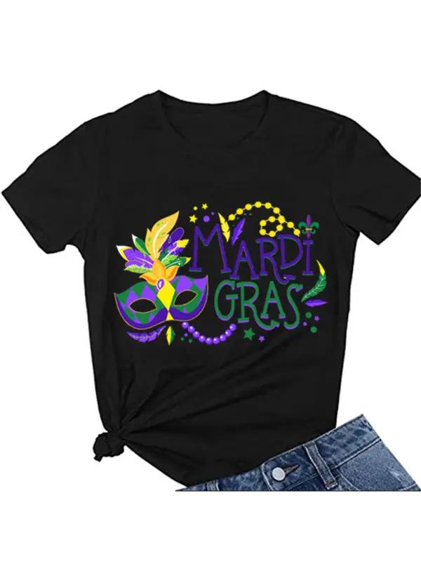 Black Rhinestone Mardi Gras Letter Graphic T Shirt