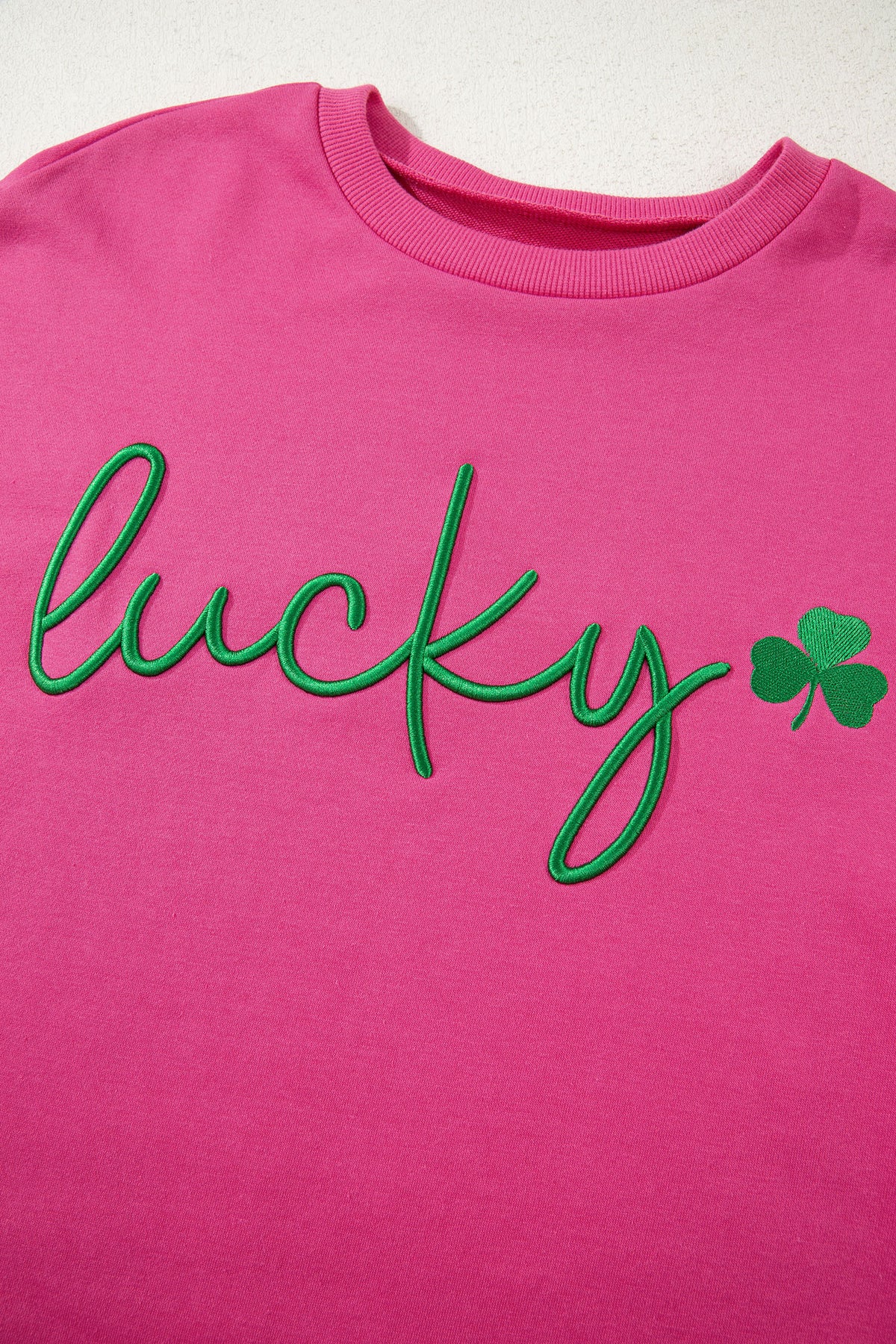 Invite good fortune into your wardrobe with this Rose Red Lucky Clover Embroidered Loose Pullover Sweatshirt. Delicate lucky clover embroidery brings festive charm and positive energy to your everyday look. The relaxed, oversized fit creates an effortless silhouette perfect for laid-back comfort, while the pullover design makes layering seamless during unpredictable weather. Pair it with your favorite jeans or casual bottoms for an instantly polished, approachable style. This versatile sweatshirt becomes an instant go-to for anyone seeking comfort without compromising on charm and personality.