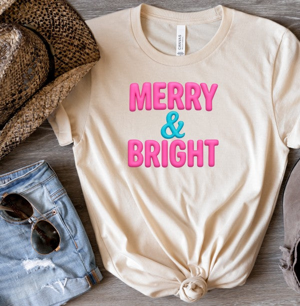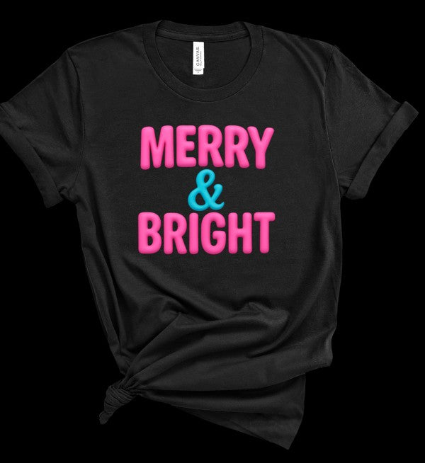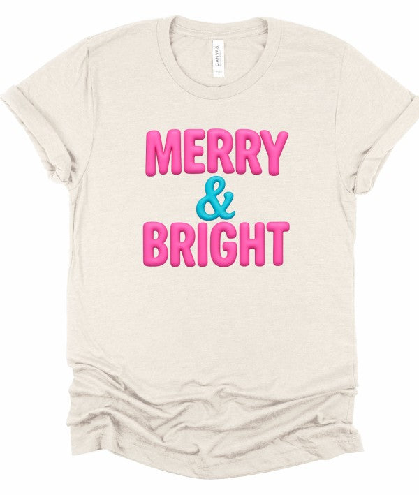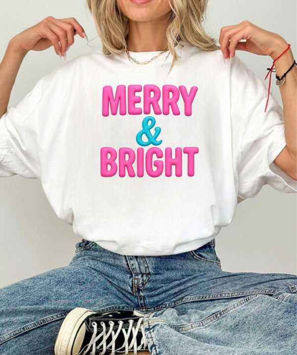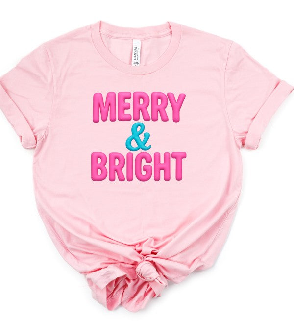 Get in the holiday spirit with our Pink Merry & Bright Graphic Boutique Tee. This fun and festive tee will have you looking stylish and spreading holiday cheer wherever you go. Made with soft and comfortable fabric, it's the perfect addition to your winter wardrobe.
