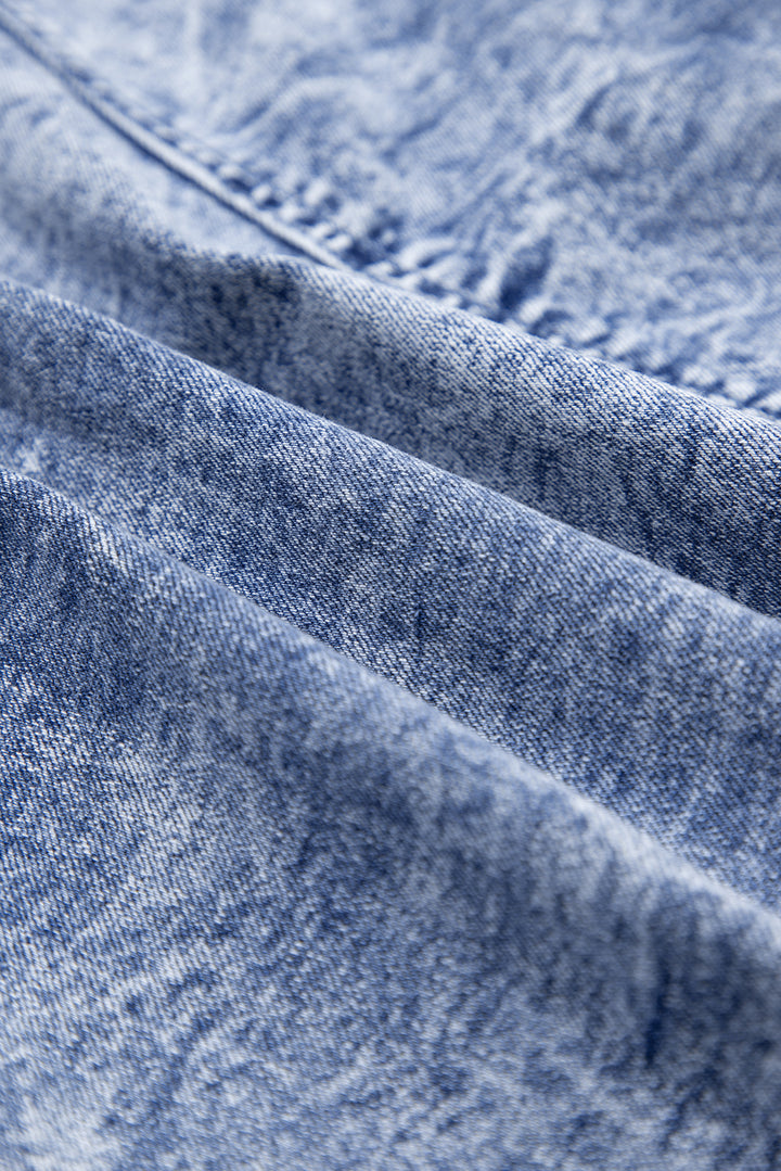 Indulge in some flirty fun with our Blue Frilly Square Neck Bustier Puff Sleeve Short Denim Dress. This dress accentuates your curves and adds a touch of femininity with a square neck, frilled detail, and puff sleeves. The flattering fit is sure to make you feel confident and sexy. (Don't forget to snap a selfie!)