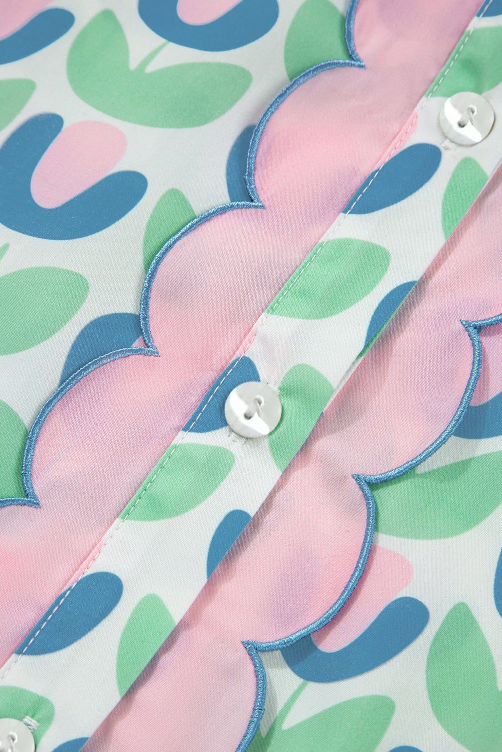 Bring whimsy to your wardrobe with this playful green mini dress! Featuring a charming floral print and contrast scalloped details, it adds a fun twist to classic style. The shirt collar with half-button neck and cuffs keeps it fresh and flirty—perfect for turning heads wherever you go.