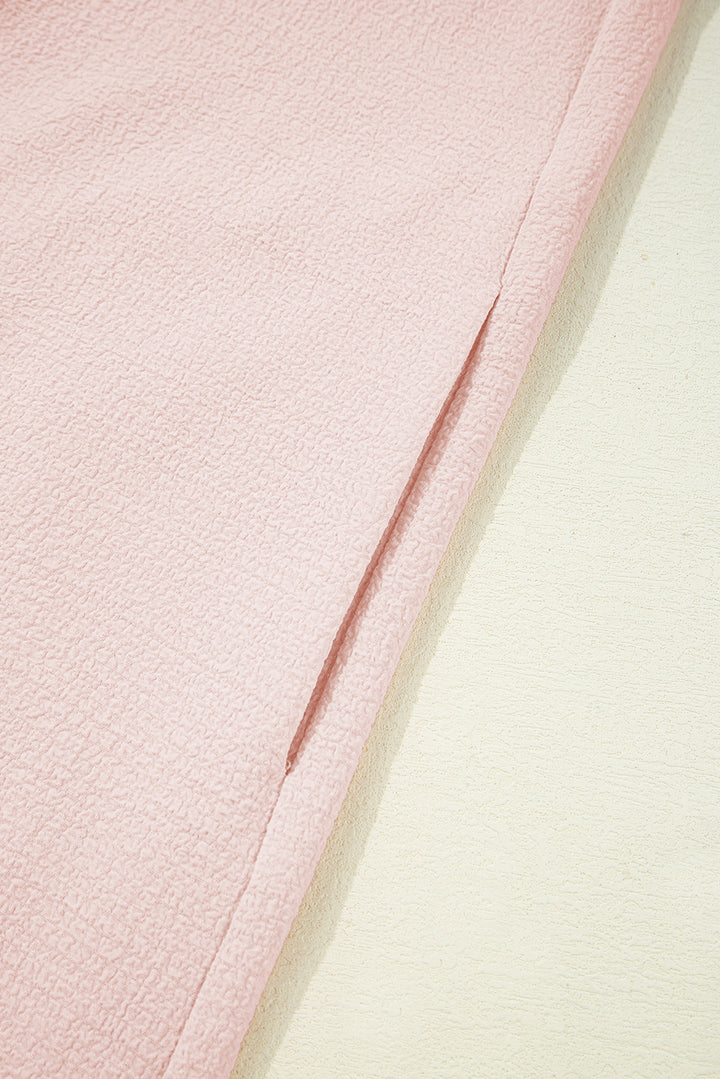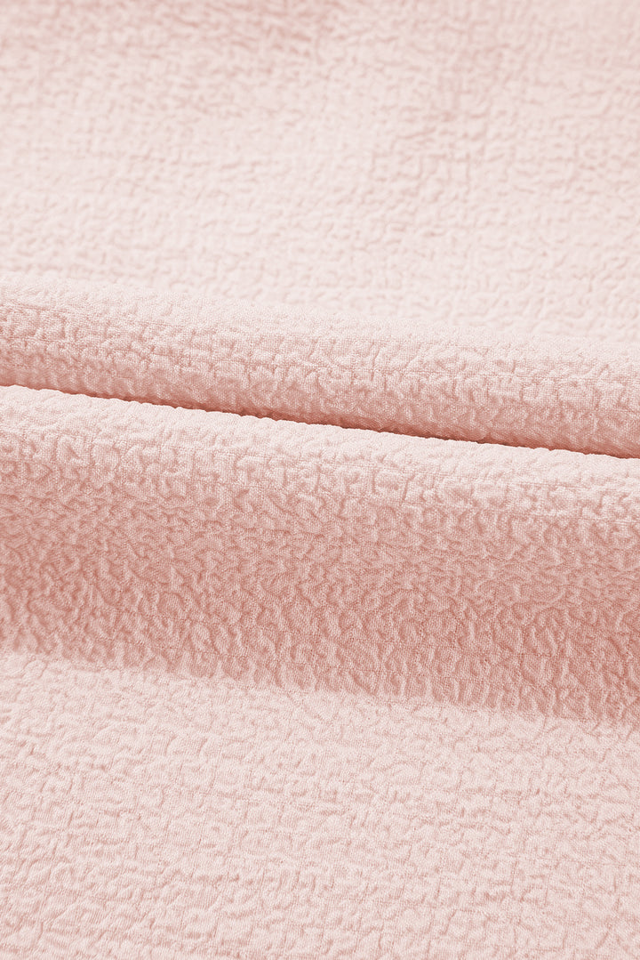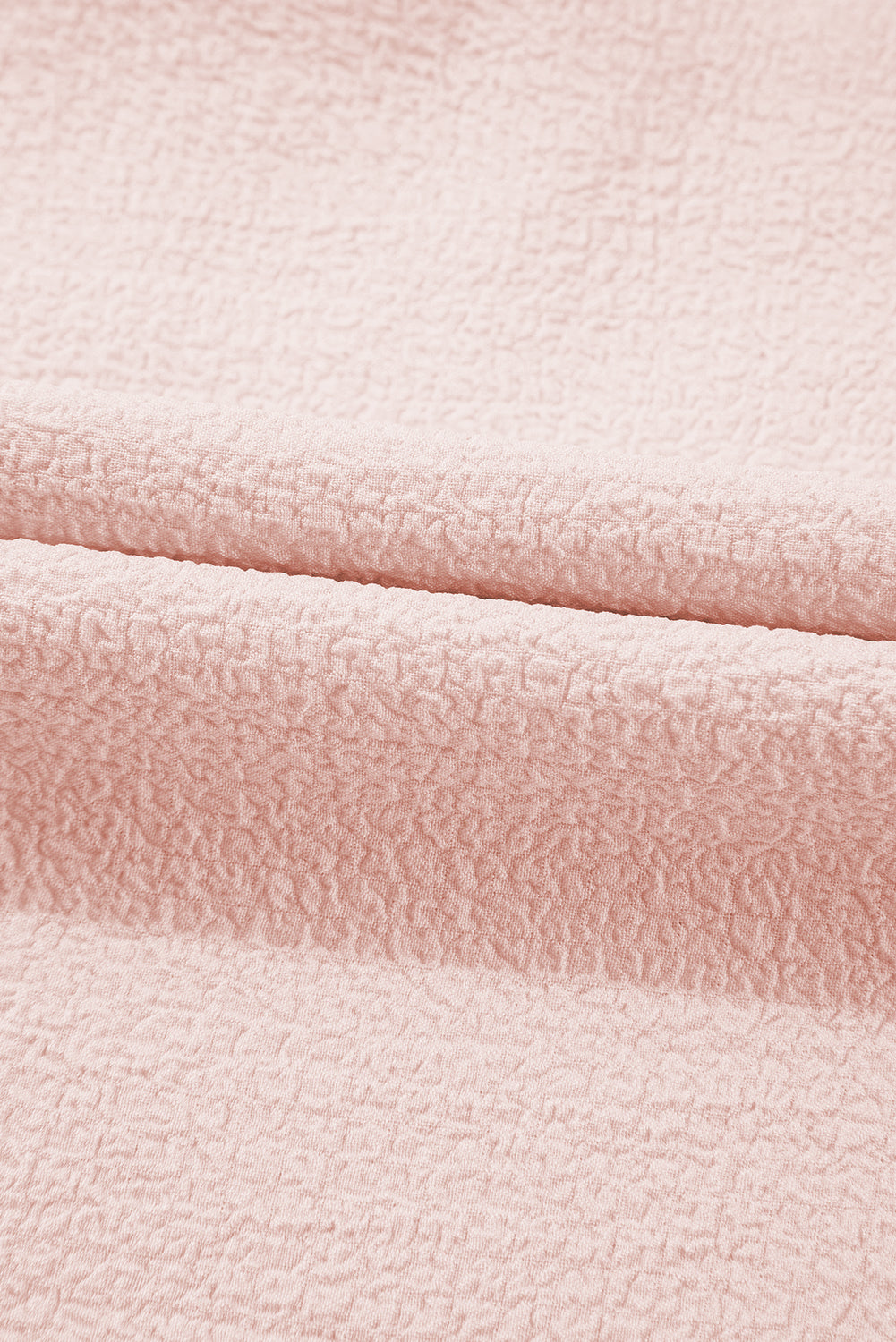 Looking for a playful summer dress? Look no further! Our Light Pink Textured Flutter Sleeve Square Neck Bow Back Mini Dress offers a unique textured fabric for a one-of-a-kind look. The square neck highlights your collarbone while the flutter sleeves add a touch of princess-like grace. And don't forget the cute and feminine bow back that adds a charming touch to your womanly style. Perfect for any occasion!