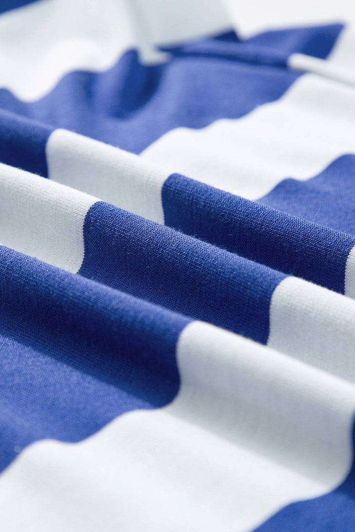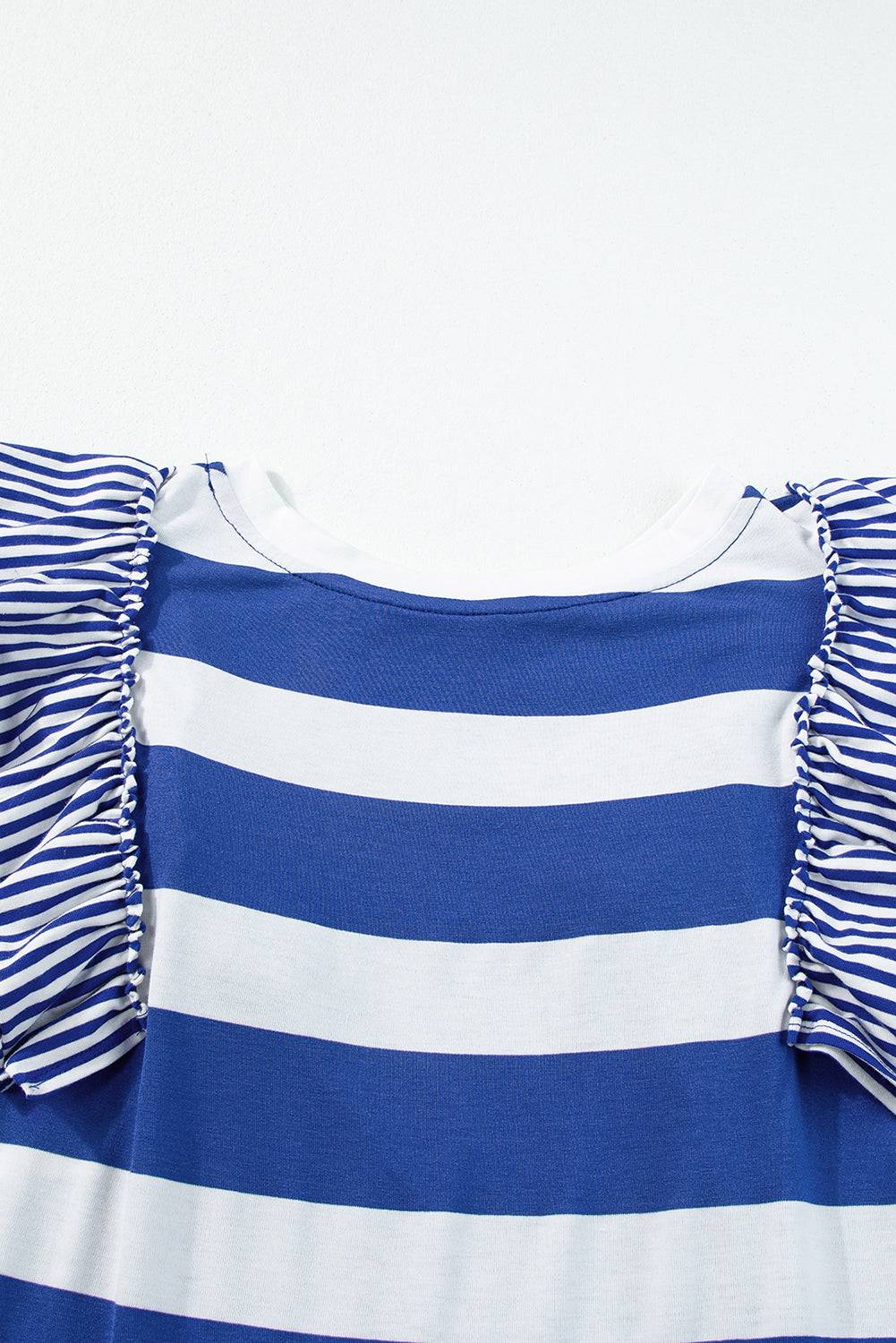 Macro shot of fabric texture on Sky Blue Stripe Ruffle Sleeve T Shirt Dress, showing soft and breathable material.